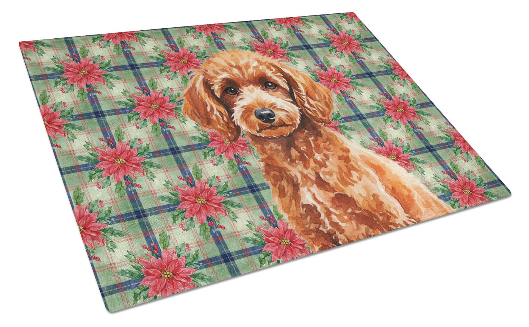 Home > Toy Red Poodle Christmas PoinsettIas Glass Cutting Board Decorative Tempered Glass Kitchen Cutting and Serving Board Large Size Chopping Board