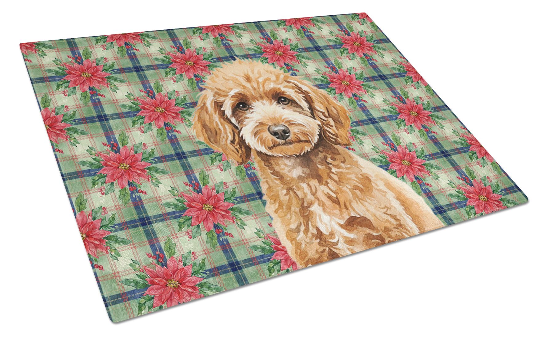 Miniature Apricot Poodle Christmas PoinsettIas Glass Cutting Board Decorative Tempered Glass Kitchen Cutting and Serving Board Large Size Chopping Boa