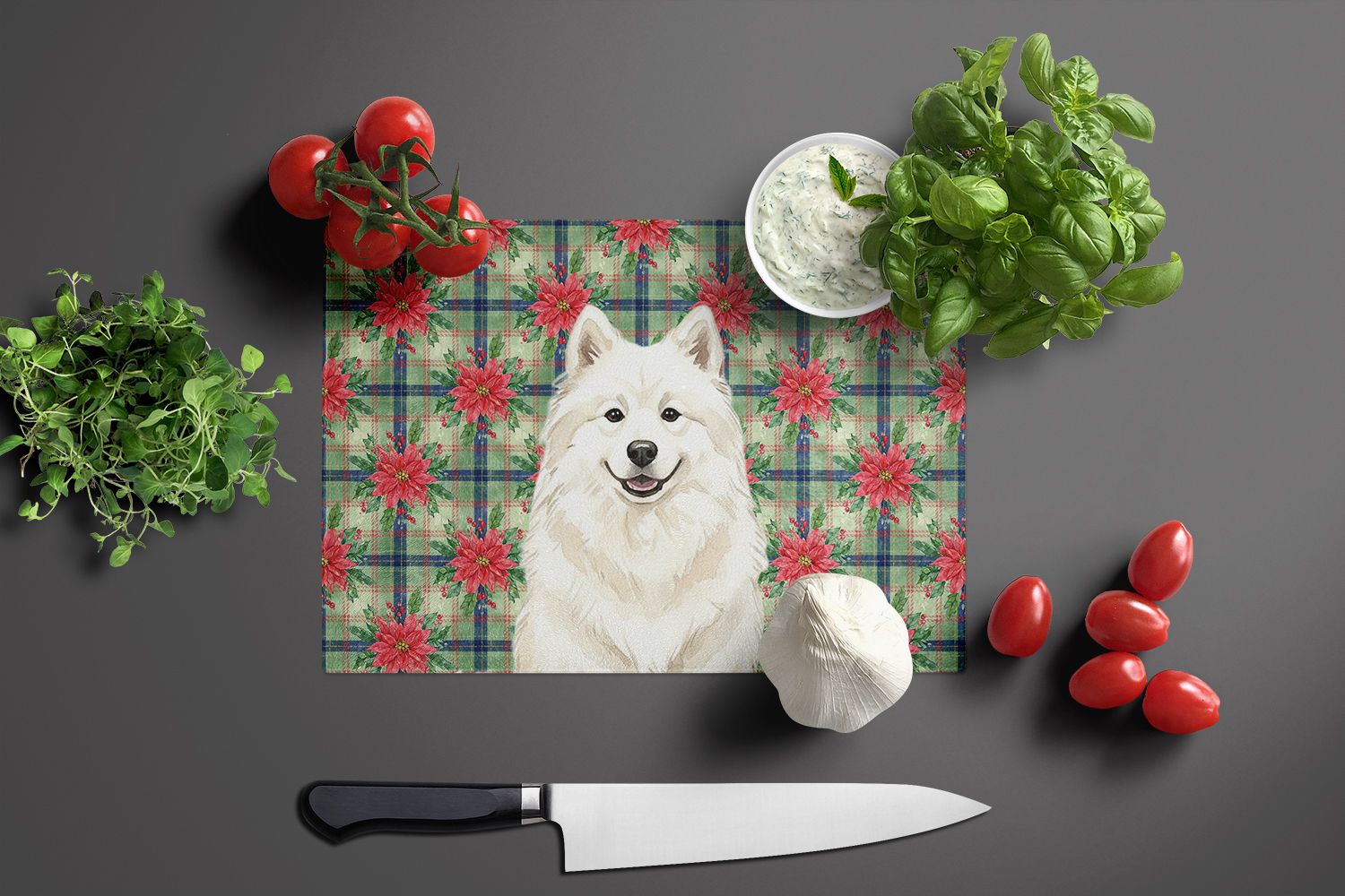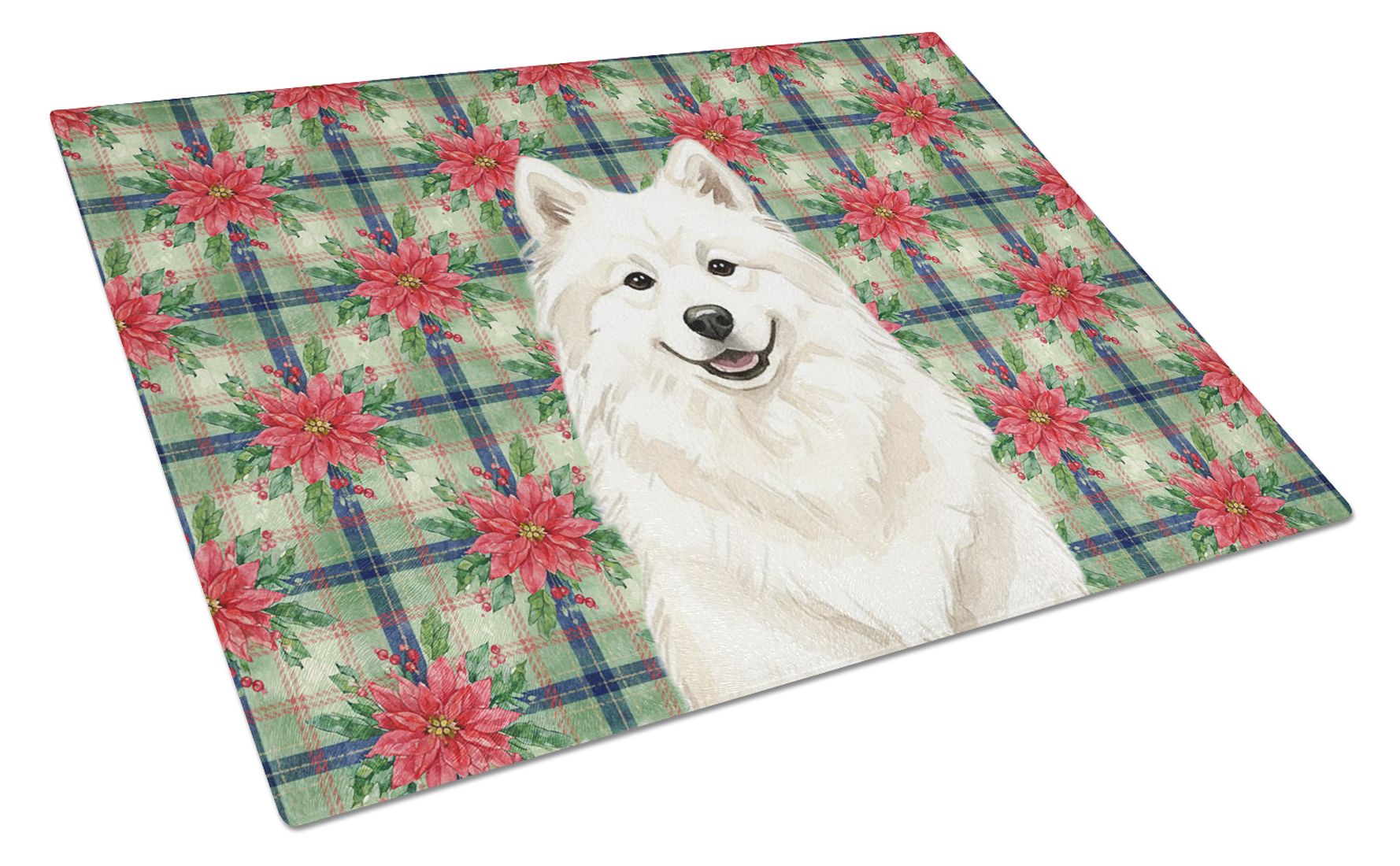 Home > Cream Samoyed Christmas PoinsettIas Glass Cutting Board Decorative Tempered Glass Kitchen Cutting and Serving Board Large Size Chopping Board