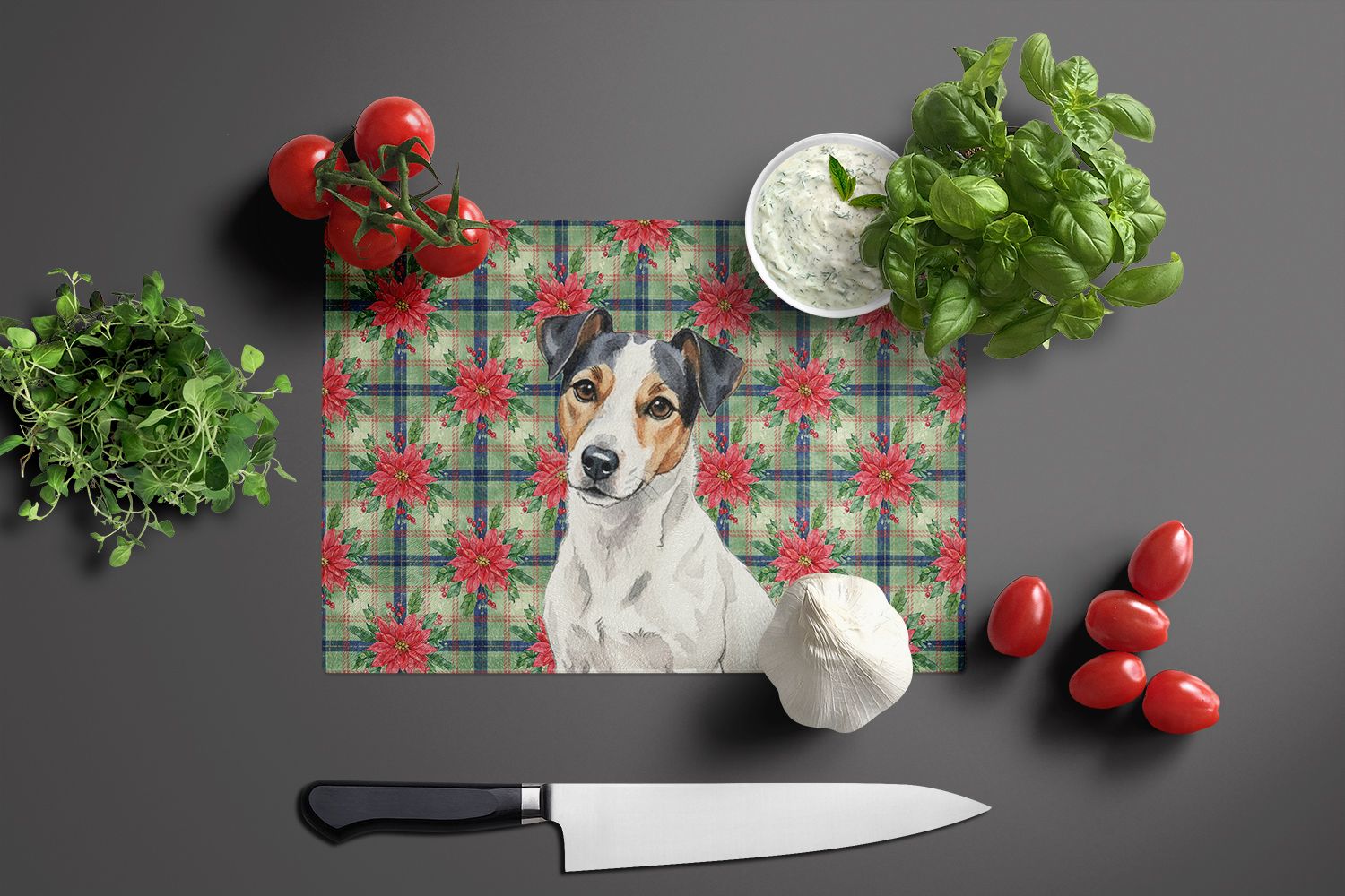 Home > White with Black Markings Russell Terrier Christmas PoinsettIas Glass Cutting Board Decorative Tempered Glass Kitchen Cutting and Serving Board Large